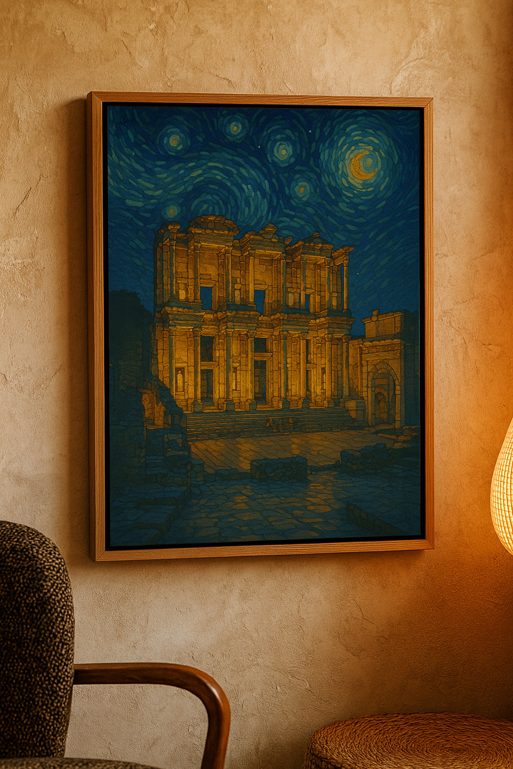 Van Gogh’un büyüleyici “Yıldızlı Gece” dokusundan ilham alan bu özel serimiz, Türkiye’nin tarihi güzellikleriyle harmanlandı. 40×50 cm tuvalimiz, uzun ömürlü kullanım için sağlam şaseye gergin şekilde hazırlanır ve dalgasız, stabil bir yüzey sunar.