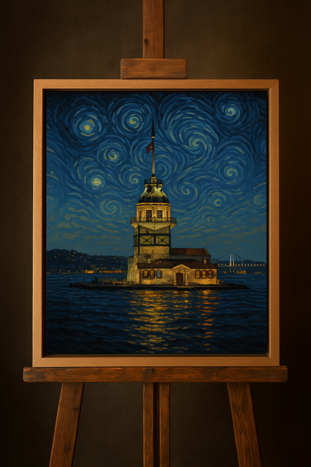 Van Gogh’un büyüleyici “Yıldızlı Gece” dokusundan ilham alan bu özel serimiz, Türkiye’nin tarihi güzellikleriyle harmanlandı. 40×50 cm tuvalimiz, uzun ömürlü kullanım için sağlam şaseye gergin şekilde hazırlanır ve dalgasız, stabil bir yüzey sunar.
